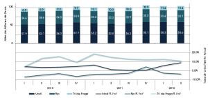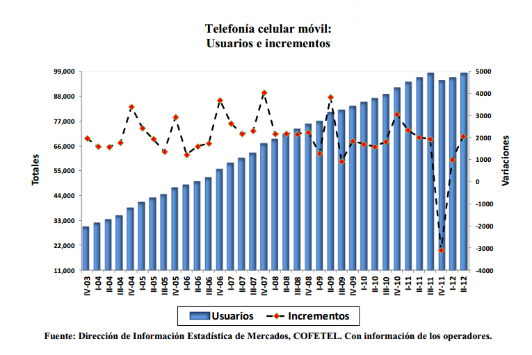 The mobile phone market continued to post positive results, both in numbers of subscribers and minutes. ITEL also noted that SMS and data applications are becoming important income sources for wireless carriers. During the 2Q12, 1.9 million subscribers were added, reaching a total mobile subscriber base of 97.6 million and a penetration level of 86.9 mobile lines per 100 inhabitant or 86.9%.